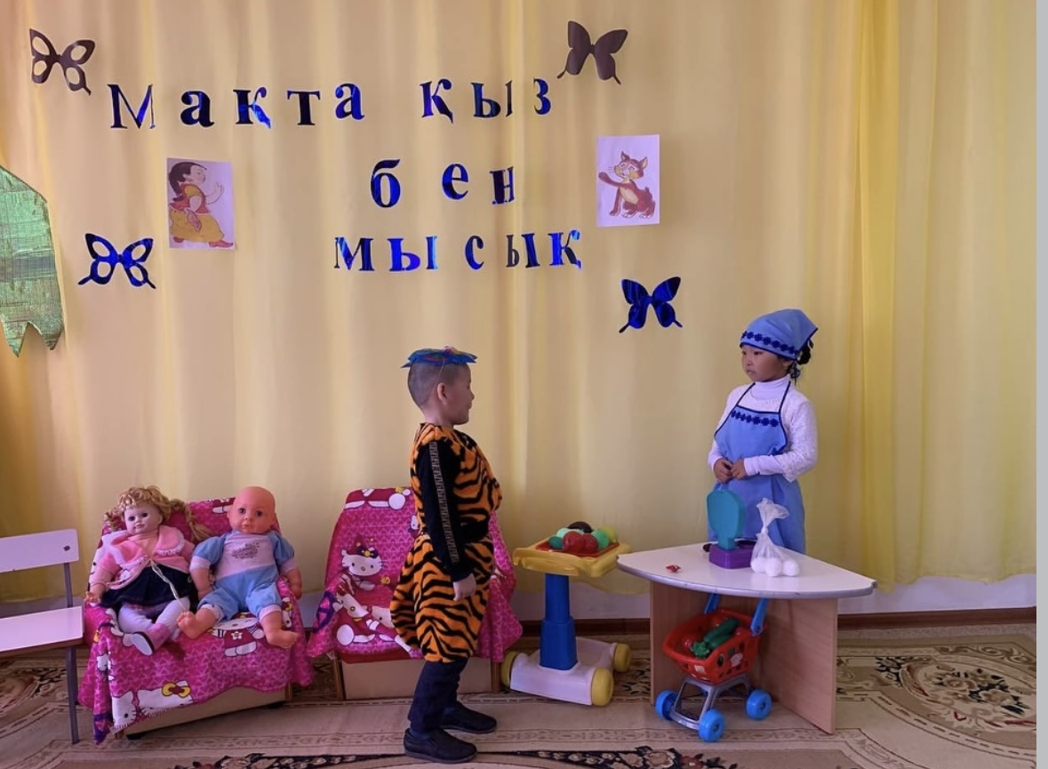 №8 негізгі орта мектебінде Шабыт үйірмесінің жетекшісі ұйымдастыруымен Мақта қыз және мысық сахналық қойылым өткізілді