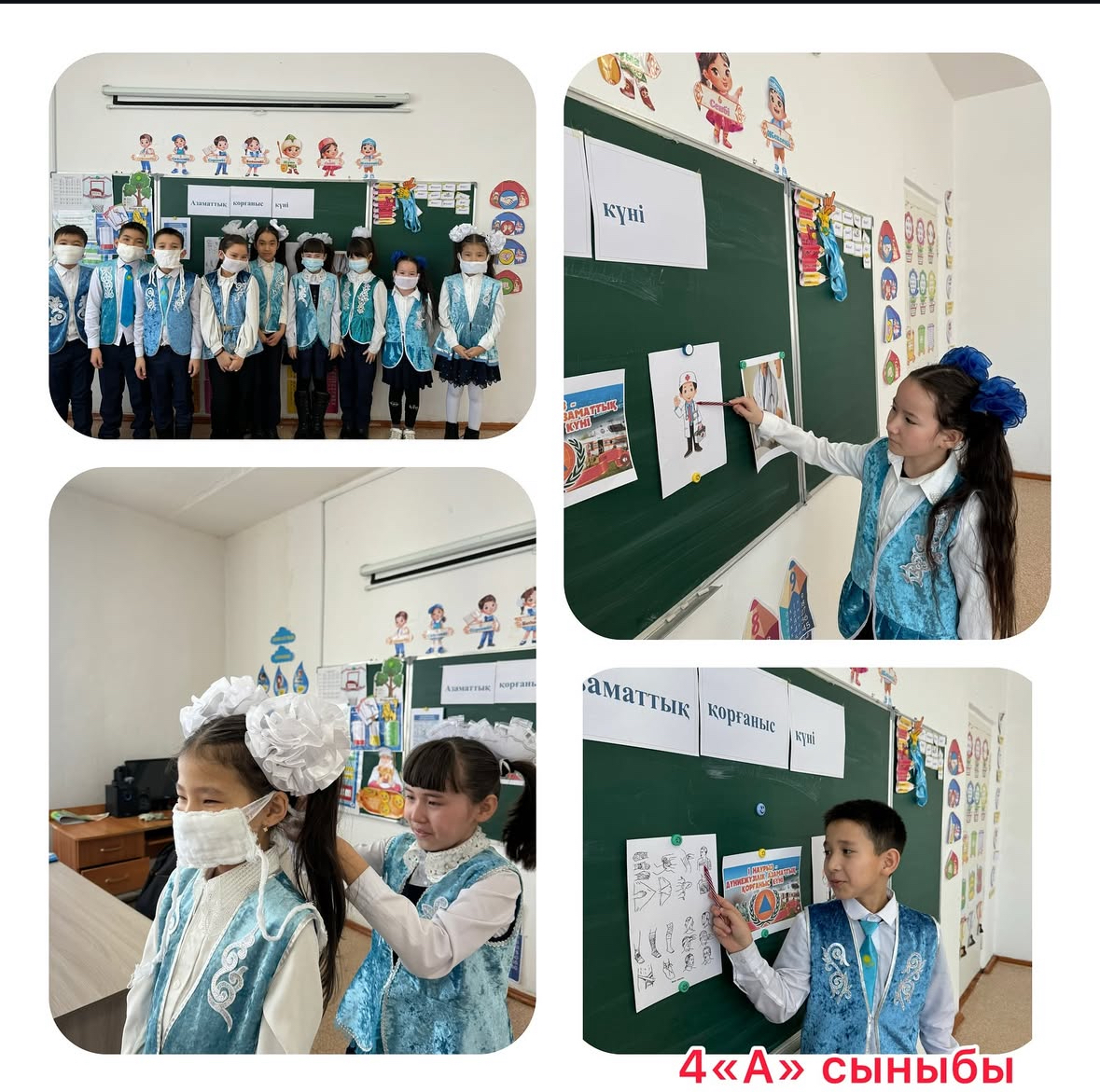 1 наурыз - Азаматтық қорғаныс күніне орай 1 - 4 сыныптар арасында жалпы сынып сағаттары өткізілді. Сынып сағаттарында оқушыларға төтенше жағдайлардың түрлері, олардың алдын алу жолдары және төтенше жағдайлар кезіндегі қауіпсіздік ережелері туралы ақпарат берілді. Сонымен қатар, оқушылар азаматтық қорғаныс саласындағы негізгі терминдермен таныстырылып, өздерінің білімдерін тереңдетуге мүмкіндік алды.