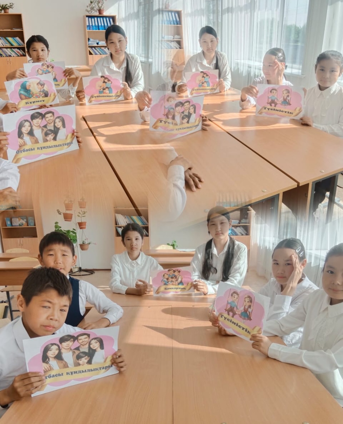 5 «А» сыныбында “Отбасы - бақыт аясы” атты сынып сағаты өткізілді.Мақсаты: оқушылардың отбасы, жанұя туралы білімдерін шыңдай түсе, отбасы құндылықтарының маңызын дәріптеу.