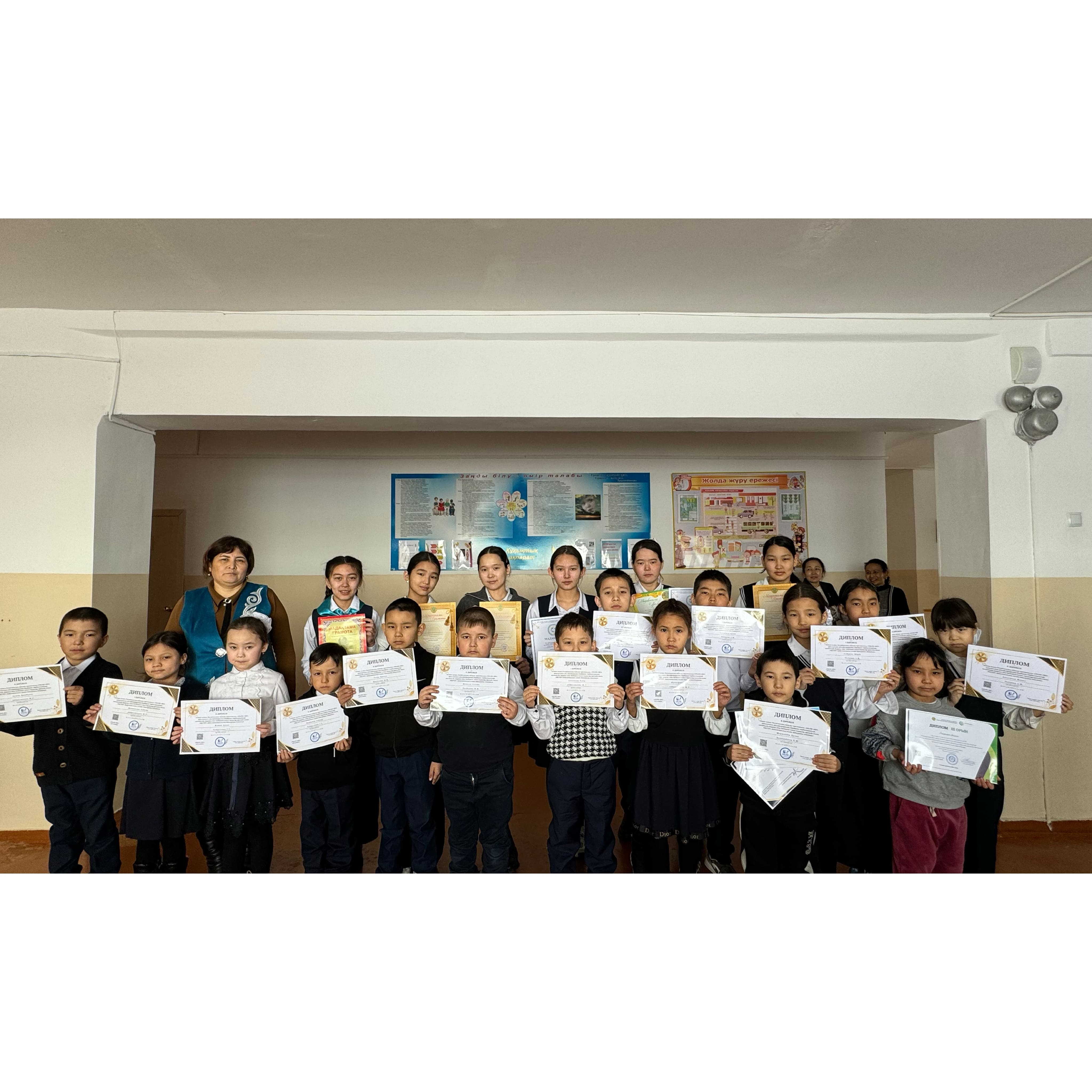 Мектепішілік салтанатты жиында мектепішілік сурет байқауының және Астана қаласы ғылыми-практикалық "ONLINE-OKU» орталығының ұйымдастыруымен балабақша тәрбиеленушілері,мектепалды даярлық және бастауыш сынып оқушылары арасында өткен"Бастау » математикалық қашықтықтан байқауының жнлдегерлері,қалалық сайыстардың жеңімпаздары марапатталды.
